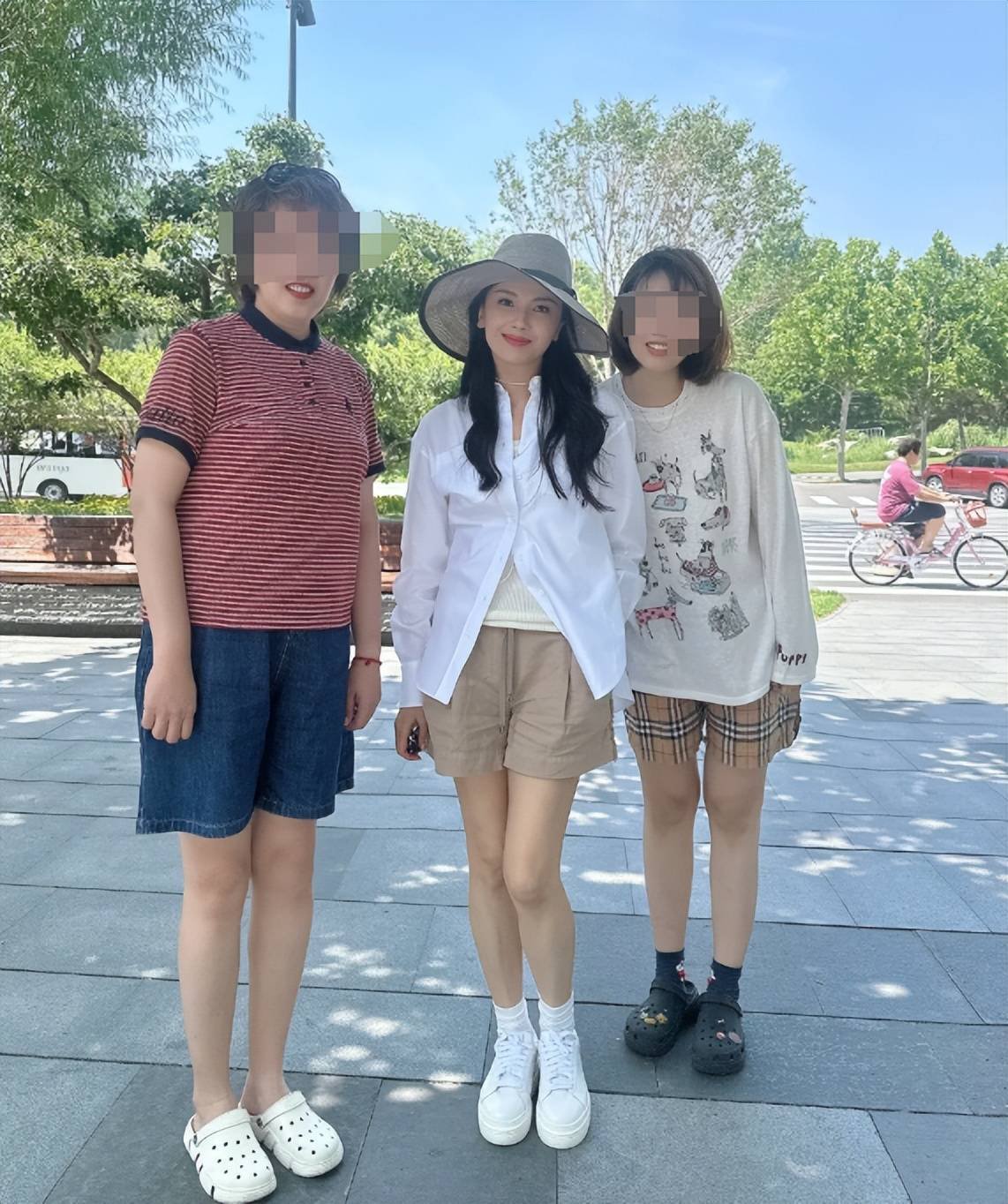 年近50岁的赵薇,一身休闲打扮很减龄,15岁的小四月穿着简单,身材纤细,身高比妈妈还高半头,直逼170cm。