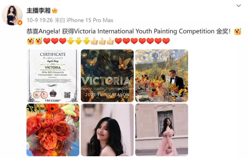 虽然网上因为这事吵翻了天,但李湘和王诗龄的生活并没有受到影响,10月9日,李湘晒出王诗龄的画拿下金奖,满是自豪和骄傲。