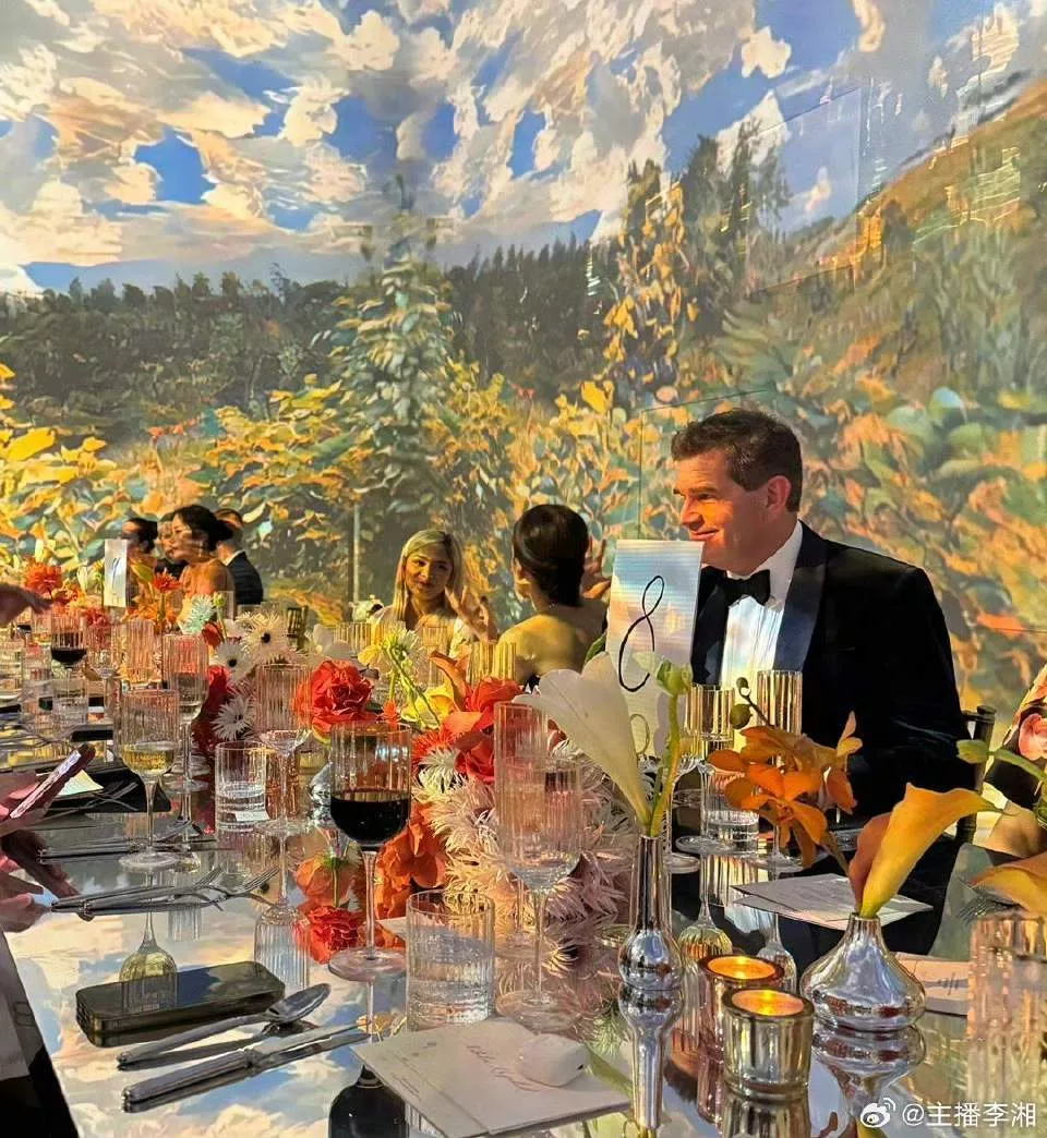 现场精心布置,摆满了鲜花和餐具,邀请的人应该不少,还有超大型粉色城堡蛋糕,奢华又梦幻。