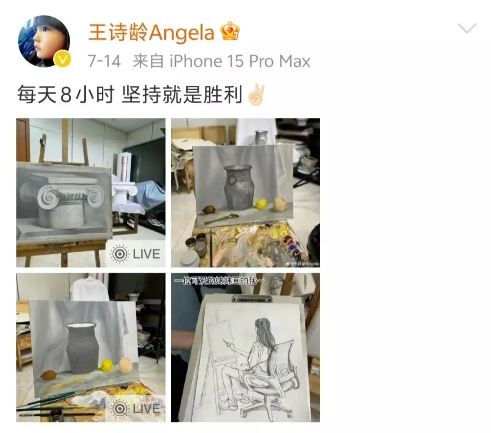 王诗龄爷爷就是知名画家,从小对画画有兴趣的她,小时候画的画就参加过不少巡展,还有一些画被高价拍卖过。