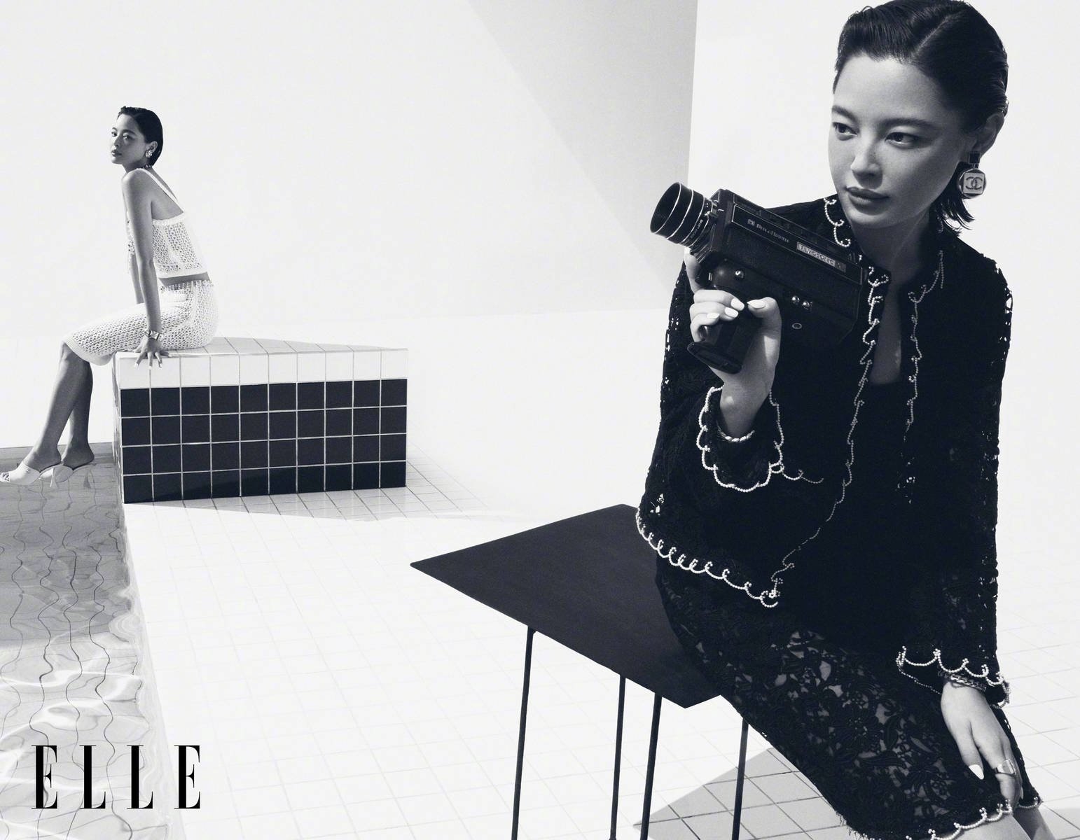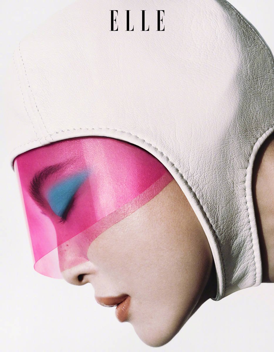 辛芷蕾面覆粉色面纱,极具艺术感。