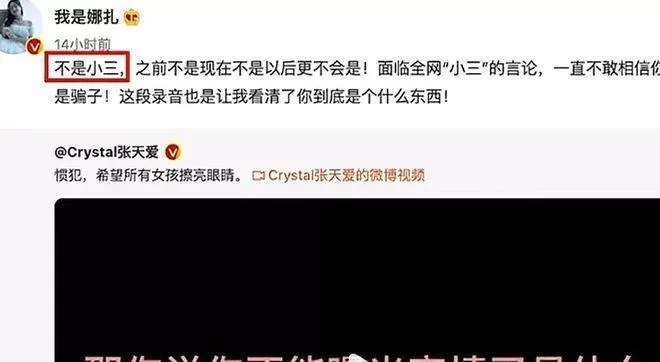 虽然娜扎第一时间否认了“第三者”的传闻,但在张天爱曝光了徐开骋出轨的录音之后,她依然难逃舆论的压力。