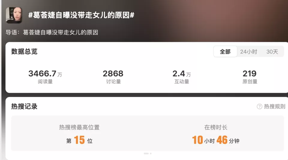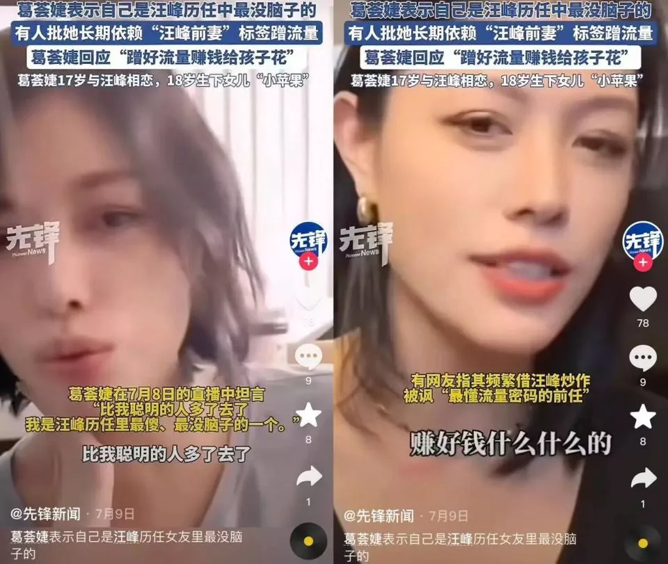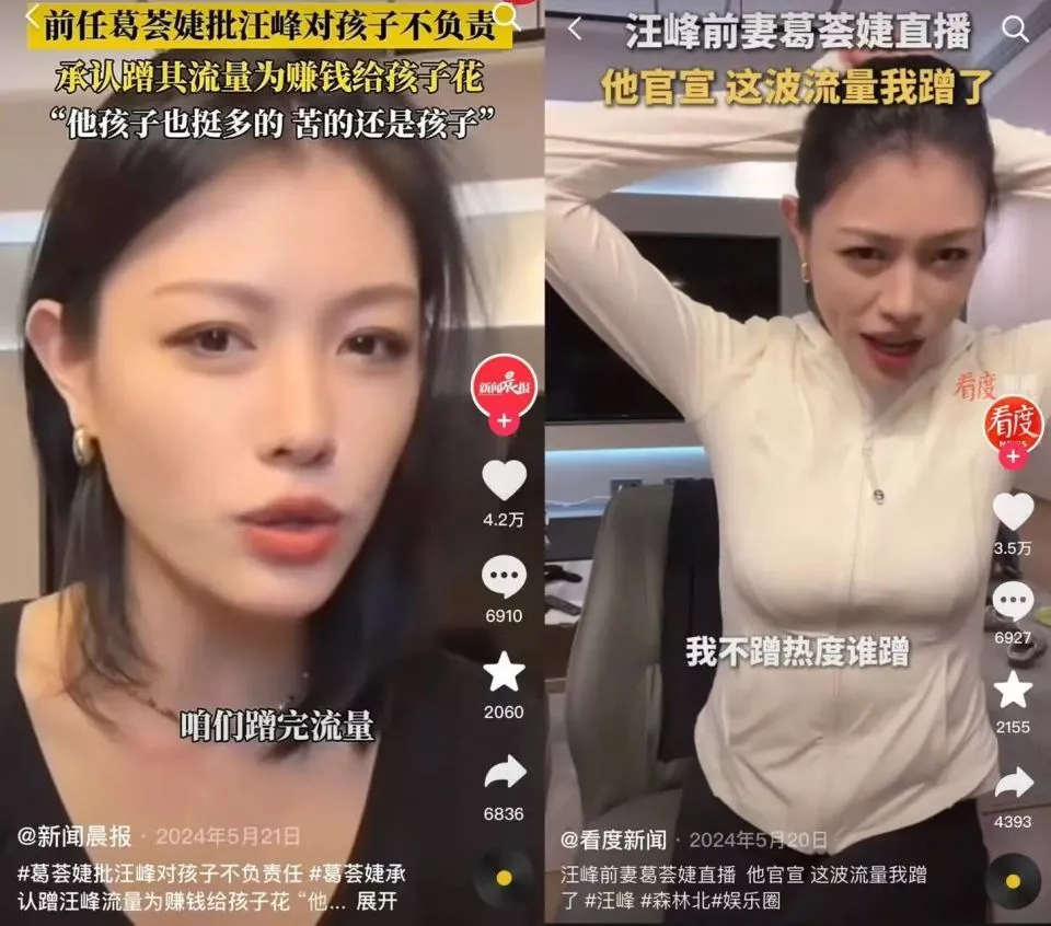 而葛荟婕也大方承认,“我不蹭热度谁蹭”“蹭完流量,赚点钱给孩子花”。