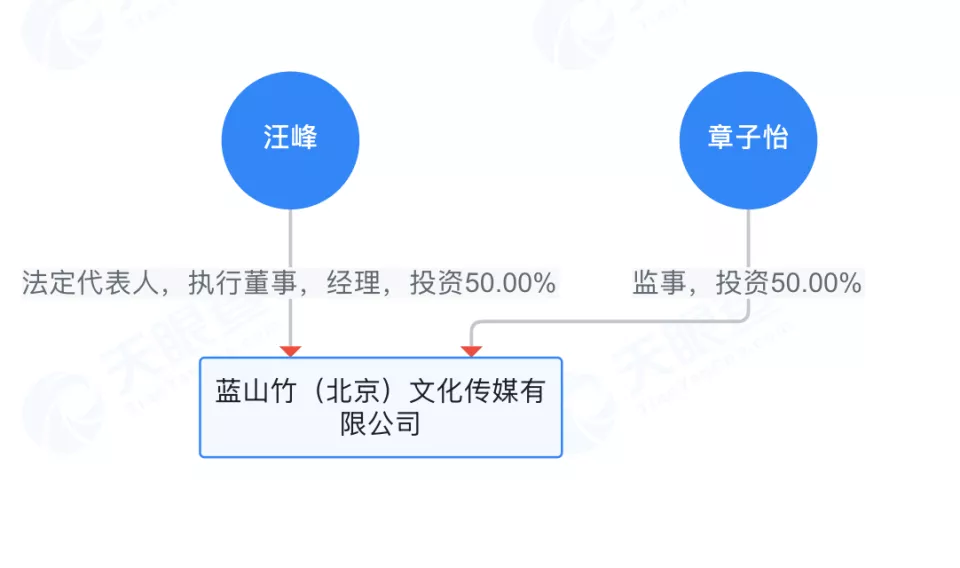 天眼查显示,目前汪峰和章子怡之间还存在着商业关联,两人共同持股【蓝山竹(北京)文化传媒有限公司】。