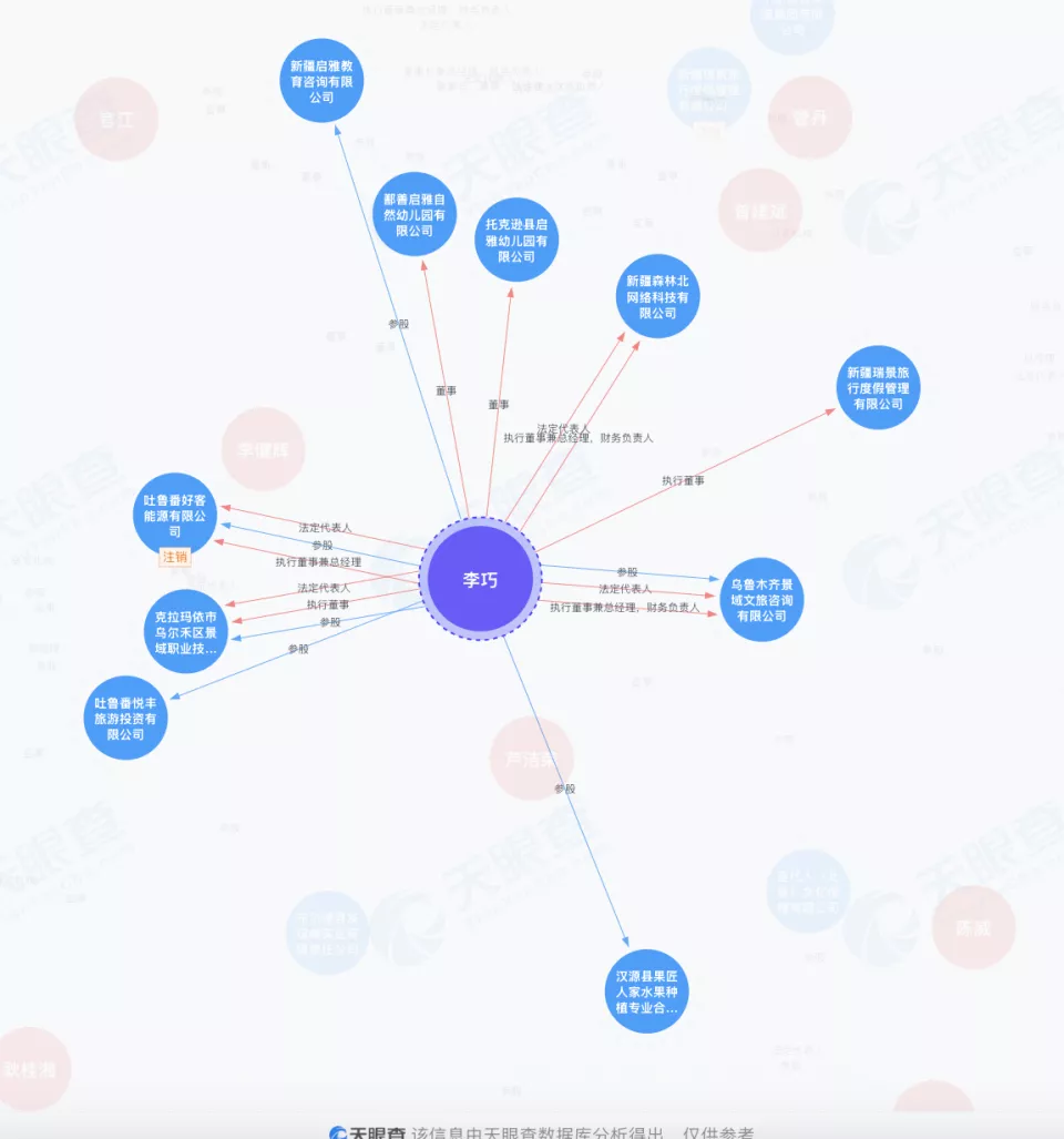 除【乌鲁木齐景域文旅咨询有限公司】外,森林北(原名李巧)名下公司还关联了9家公司,其中1家注销。