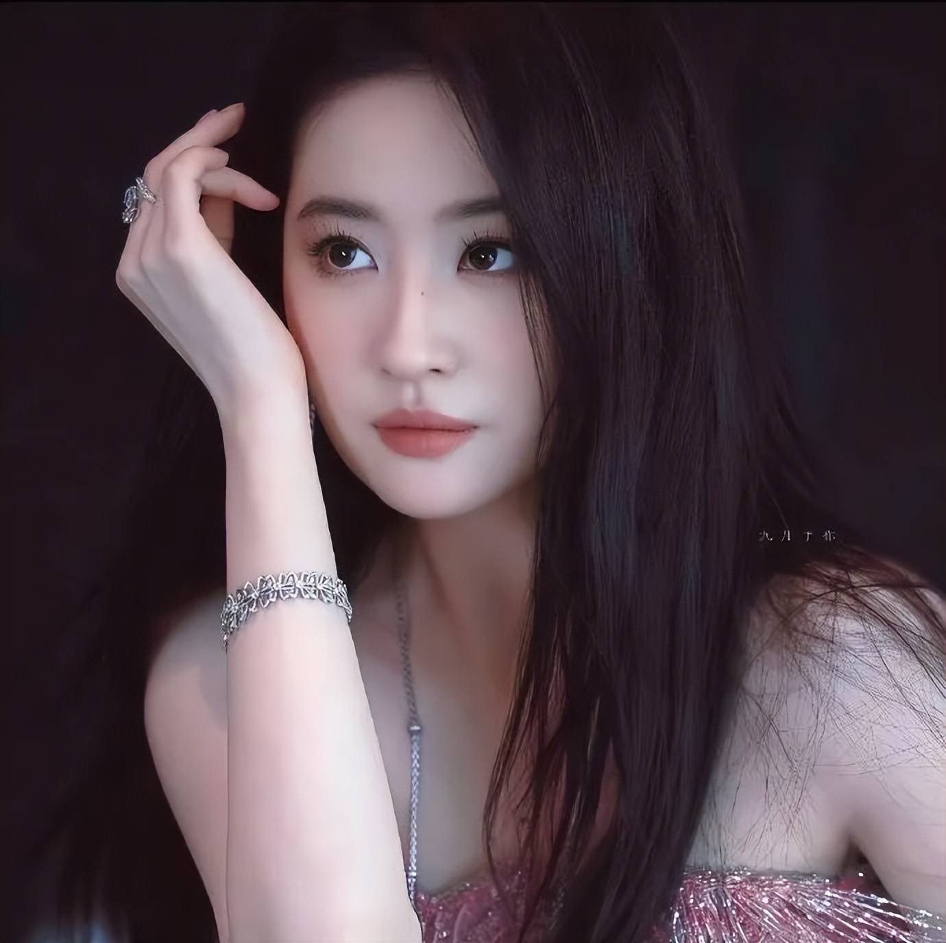 刘亦菲的双眸清澈明亮,笑意盈盈时眼尾微弯如月,静态时透出沉静力量。