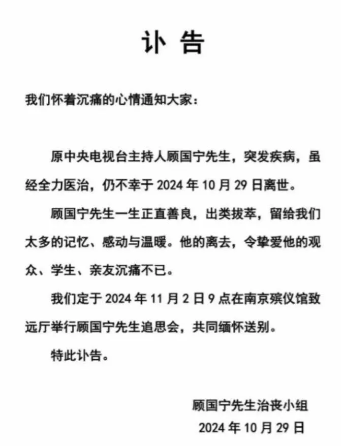 年仅46岁的前央视主持顾国宁为人们敲响警钟