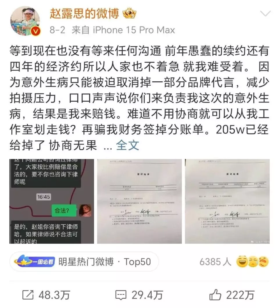 如此超高频率的消费公众情绪,在博得同情和支持外,赵露思也深陷舆论。