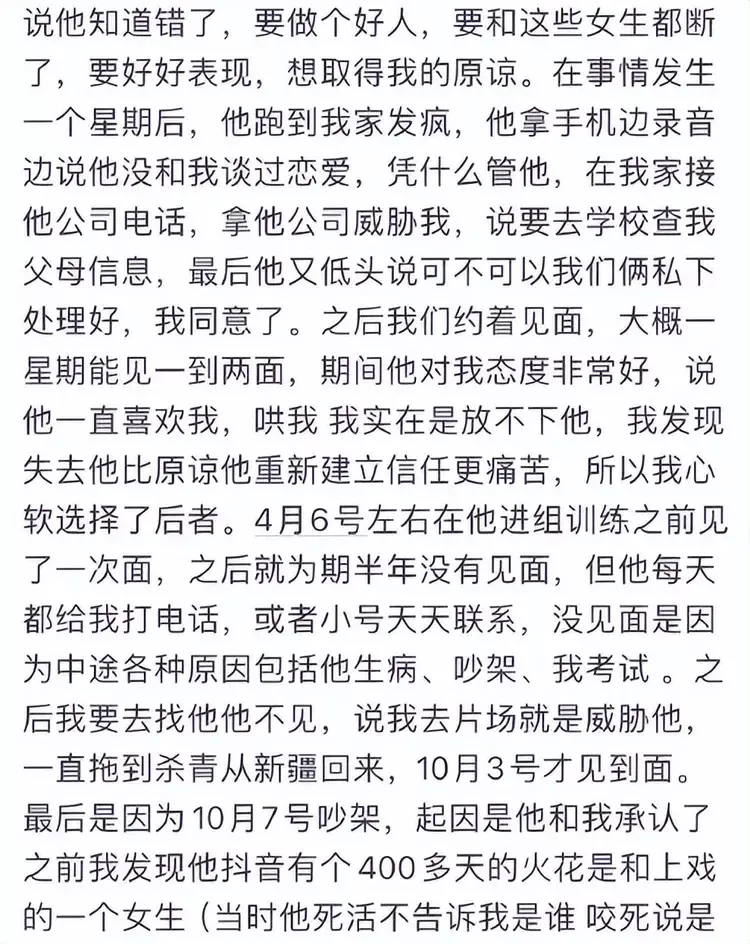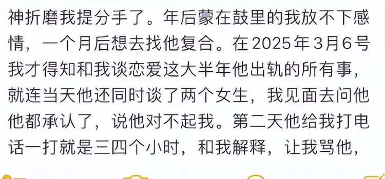 李禹熹说后来她才知道,原来荣梓杉在那期间还同时跟两个女生交往着,并对李禹熹流下悔恨的泪水,表示要改头换面要重新来过。