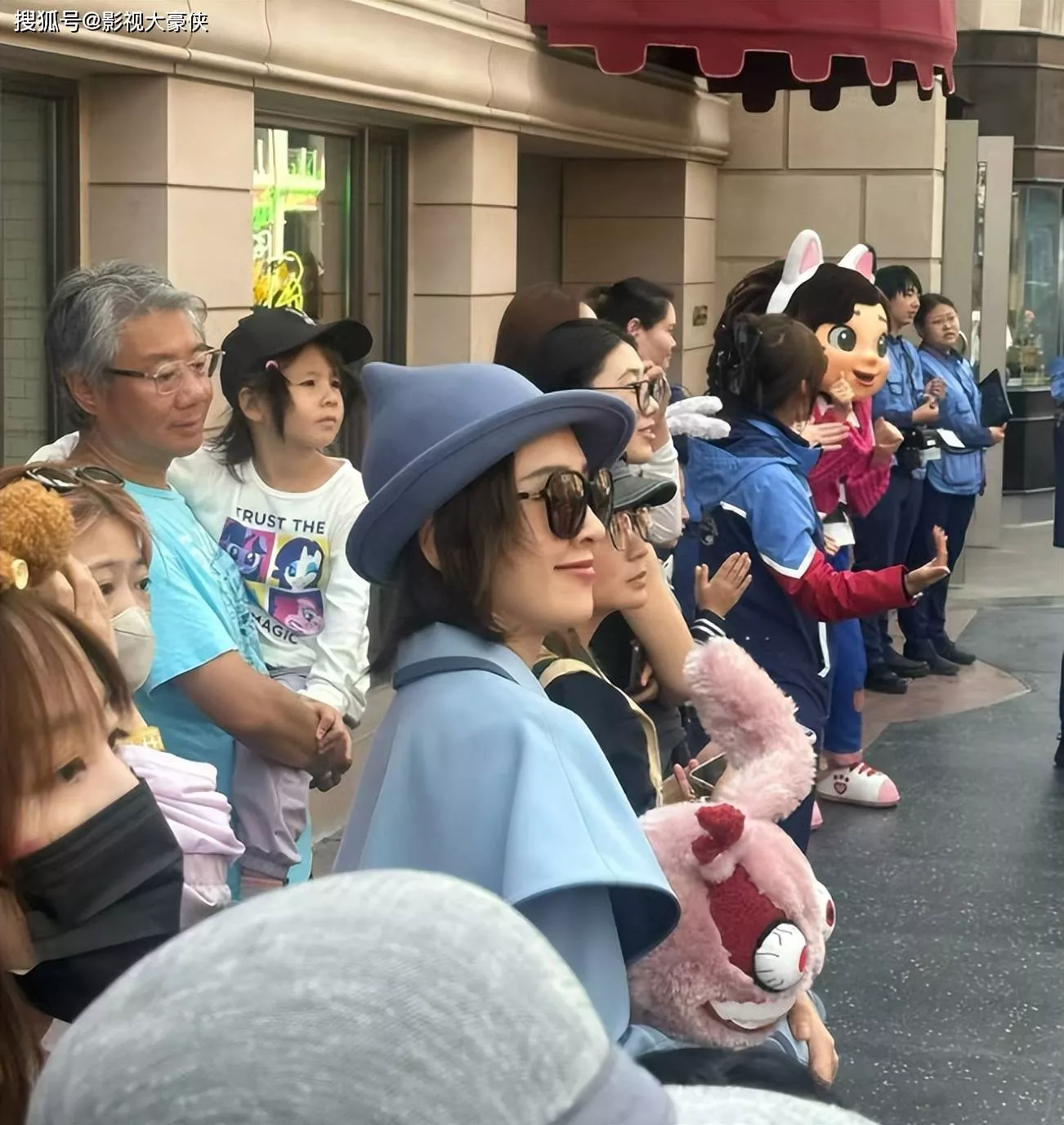 若想寻觅唐艺昕身上不沾染“魔法”气息的片刻,其一,是她端坐在皮质过山车上,从容地面对镜头,单手轻盈地比出“耶”的手势,还不经意间露出女儿的一只小手;其二,则是她怀抱着造型奇异的毛绒娃娃,于魔杖店内悠然漫步的姿态。
