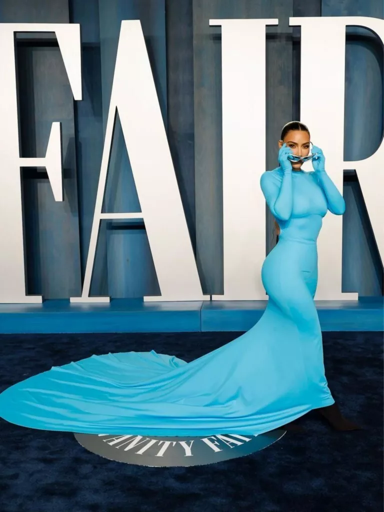 2022年的奥斯卡颁奖典礼后,卡戴珊出席了《名利场》奥斯卡派对,一件引人注目的霓虹蓝色巴黎世家紧身礼服。卡戴珊后来还在节目中吐槽「这种造型很束缚人,它们都连在一起了,所以如果我要上厕所,就很难去,吃饭和打字也很难」