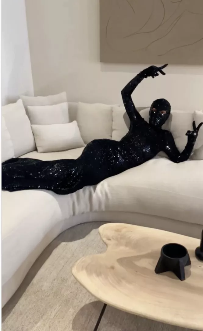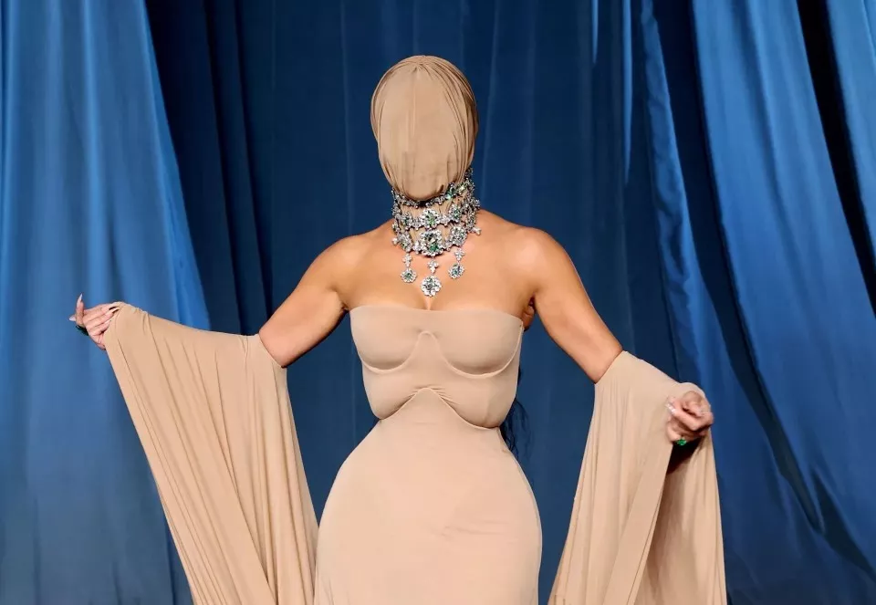 当然这身礼服还不足以让卡戴珊成为焦点,为了成为聚光灯下的焦点,金卡戴珊索性戴上面罩,包住了整个头!