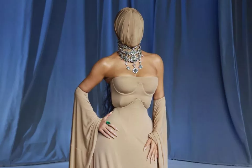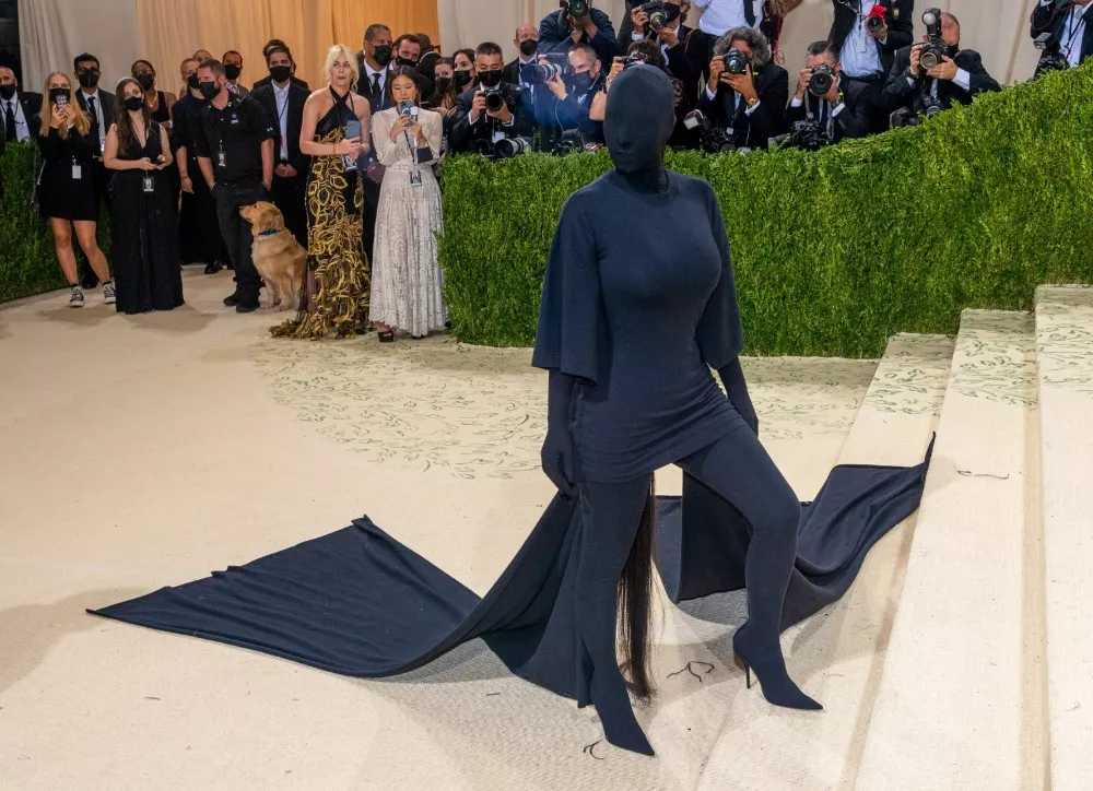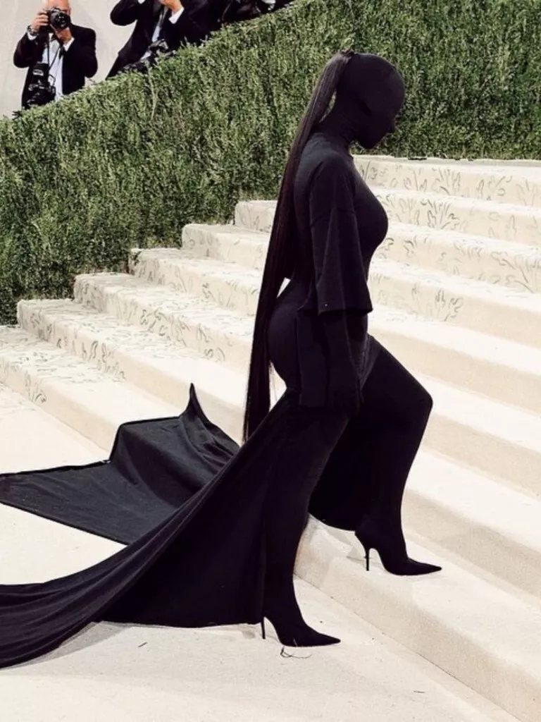 Gala,金·卡戴珊身着巴黎世家黑色包脸礼服亮相,这无疑是她亮相大都会艺术博物馆的一大亮点。后来卡戴珊也承认,她对这种前卫造型持怀疑态度。