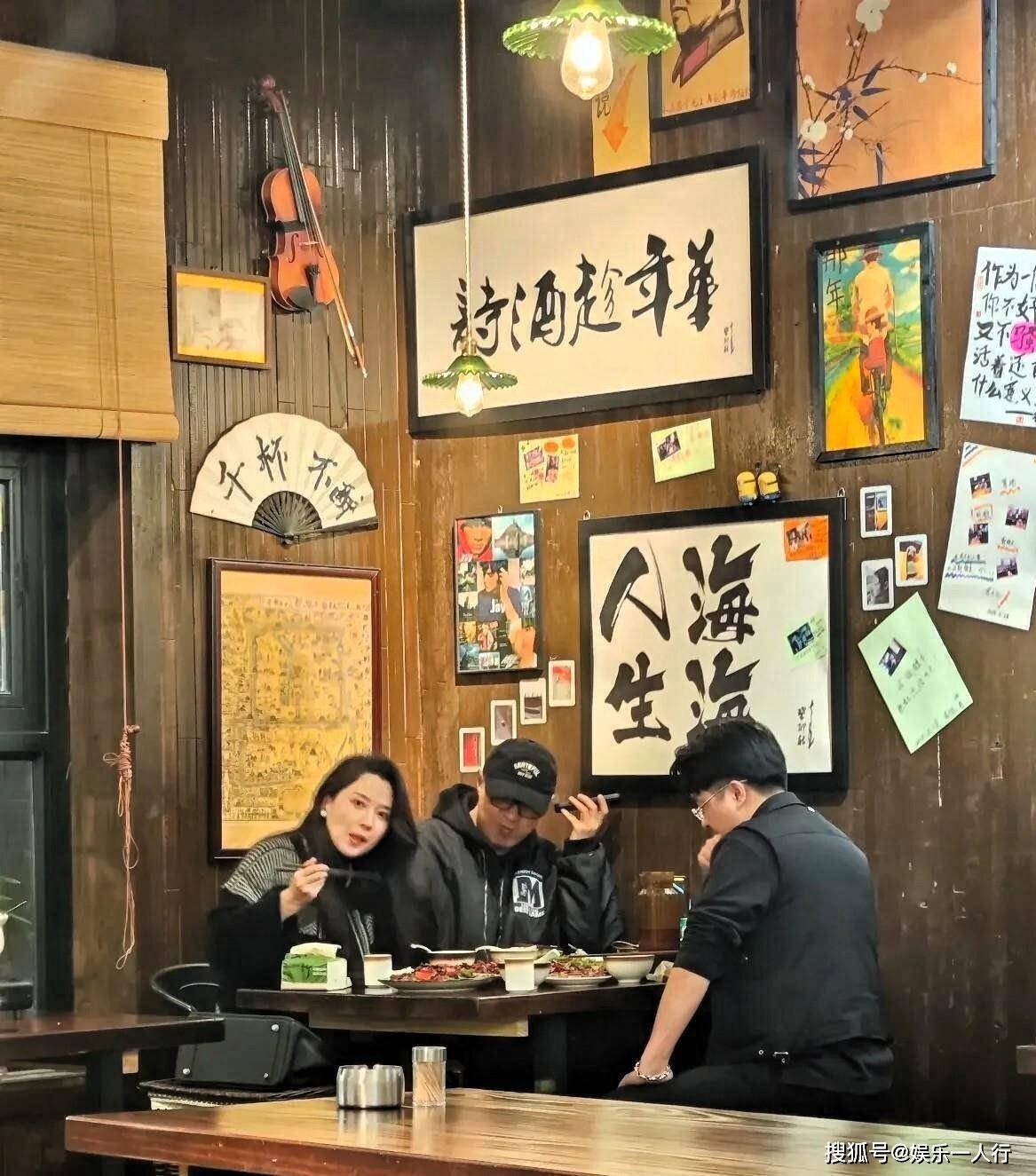 对面坐着朋友,他们却自成一个小世界。 服务员端上大盘鸡的时候,她轻轻拉他袖口,他转头,她顺势把额头贴在他胳膊上,整个过程行云流水。