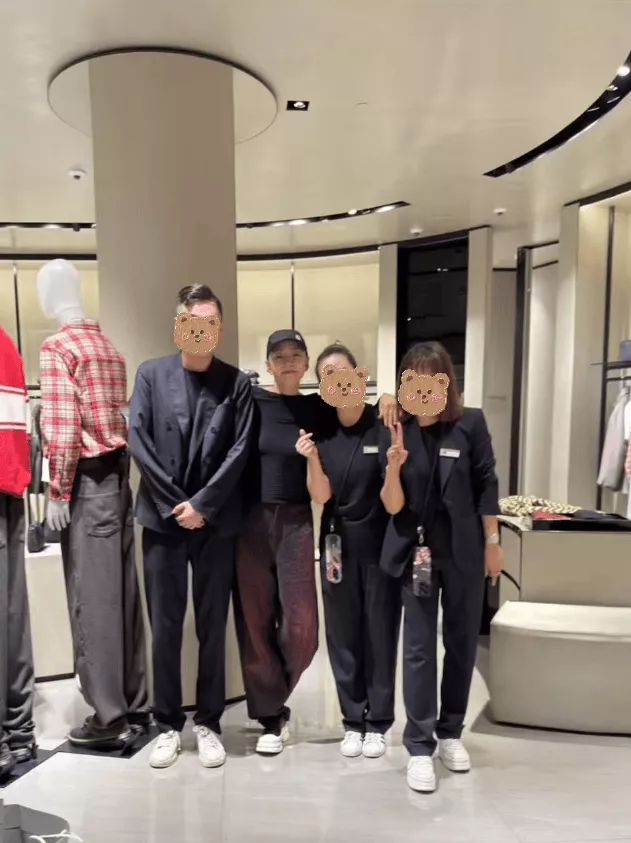 再次光顾阿玛尼的宋丹丹也是深受店员追捧,三个店员同时围着她合影。