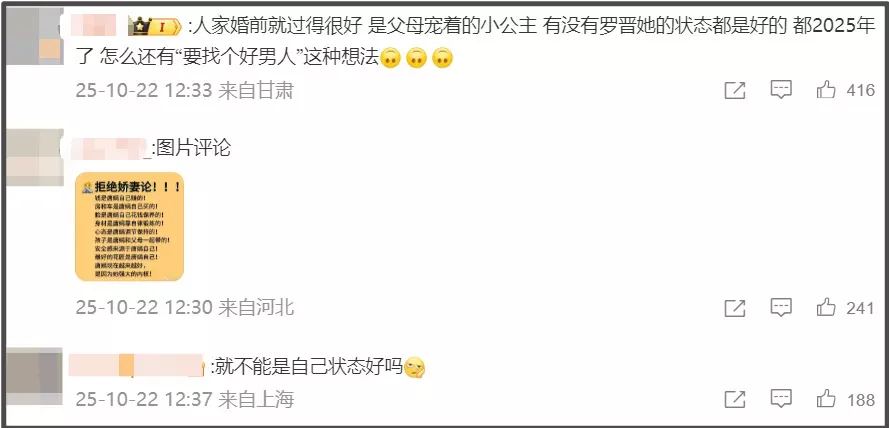 热搜话题下的评论区,前排都是吐槽,在网友看来,唐嫣有没有罗晋,状态都可以越来越好,2025年了,怎么还有女人要找个好男人才叫过得好的说法呢?