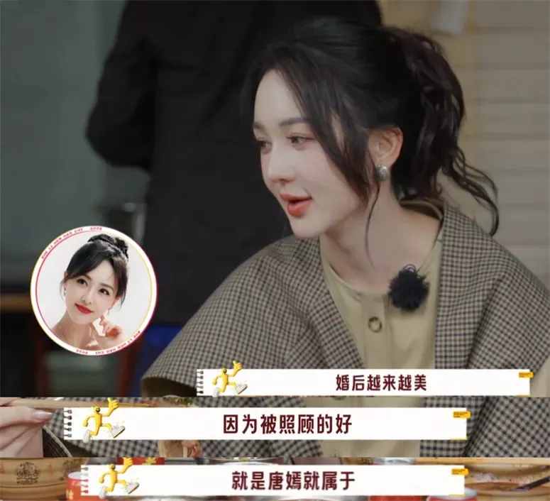 节目片段上了热搜,热搜话题还是“唐嫣被认证婚后越来越美”,乍一看像是夸唐嫣婚姻幸福,但某种程度上,把唐嫣客体化了,相当于透过唐嫣给罗晋附魅,特别是和靳梦佳对话的男嘉宾还来了一句“找个好老公很重要”,更是引发网友逆反。