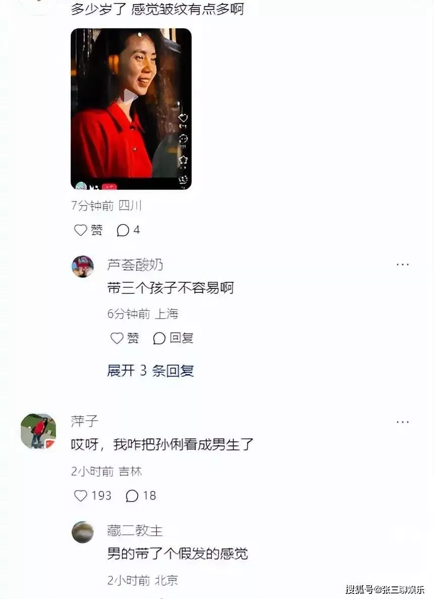 有网友还直言不讳地表示,虽然孙莉的年纪并不大,但她看起来却比实际年龄要大很多,这可能与她没有好好保养自己有关系,也可能是因为外界对女性明星的外貌要求过于苛刻,才会给她带来更大的心理压力。
