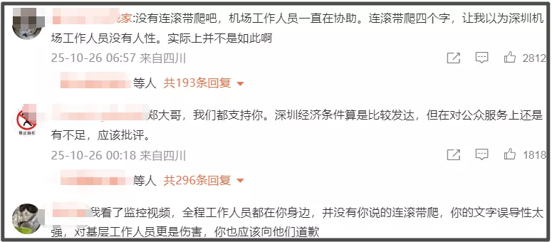 看到郑智化如此激情满满的吐槽,评论区的网友则不是一水的理解和支持,而是强势输出,有网友要求其实事求是还原深圳登机事件,理解对服务的不满,但不要趁机扩大化矛盾泼脏水,还有的网友客观解释安检严格问题,称曾有罪犯冒充残疾人劫机事件,不得不防。