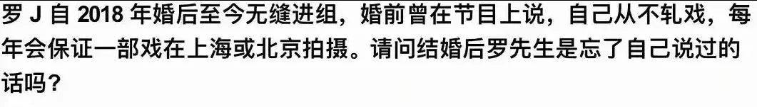 按照粉丝们的整理和爆料,从2019年到2024年,罗晋一共在13个省市拍戏,他最忙的时候一年只回了上海的家三次,其中有一次还是因为参加了上海的品牌活动,在活动结束后回了趟家。而这与罗晋曾经承诺的“每年会保证有一部戏在北京或者上海拍摄”形成了巨大的反差。