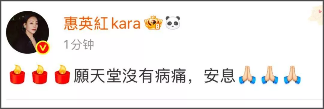 惠英红发博悼念许绍雄:“愿天堂沒有病痛,安息 ” ,两人认识多年,近年在《无限超越班》中还 合体录制。
