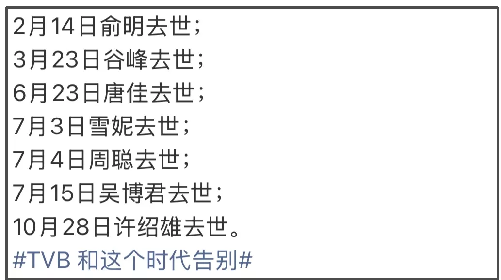 众星悼念许绍雄!赞其敬业乐观戏品好,今年TVB已有7位老戏骨离世