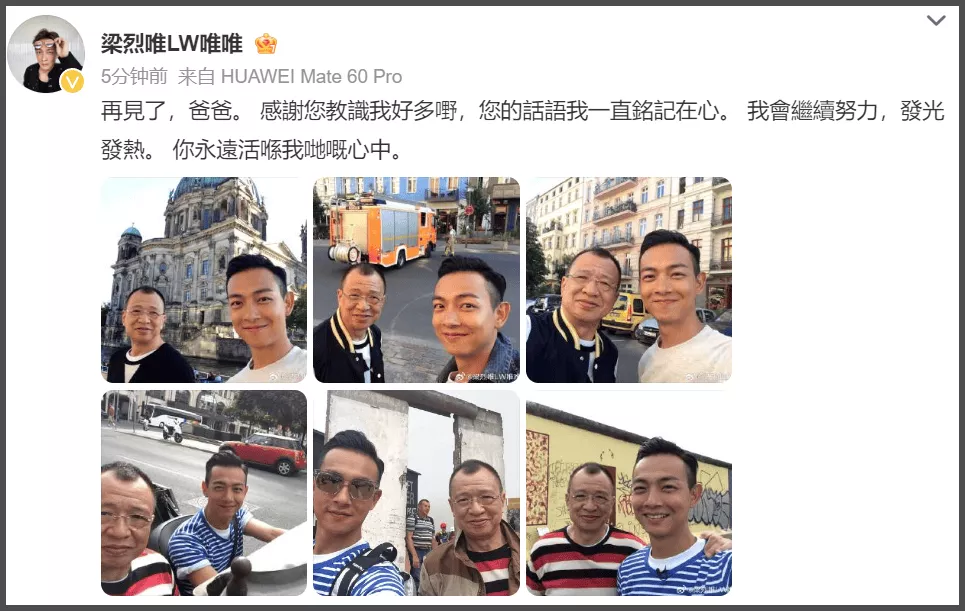 梁烈唯晒出多张合影悼念“爸爸”许绍雄,感谢他的教导,会继续在演艺事业上努力发光。