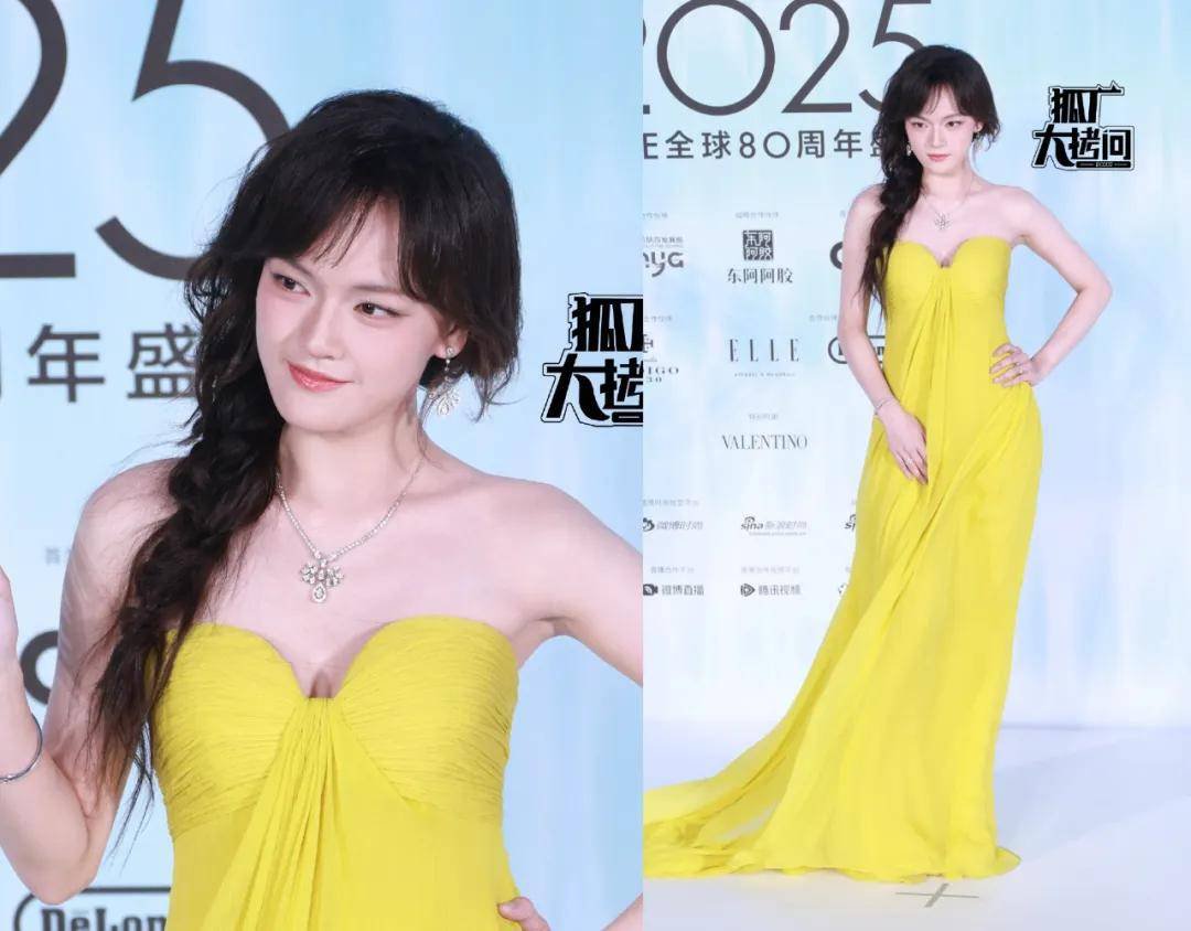 文淇的造型越来越有进步,松散麻花辫搭配黄色长裙,既有少女的明媚,又带有几分温柔。