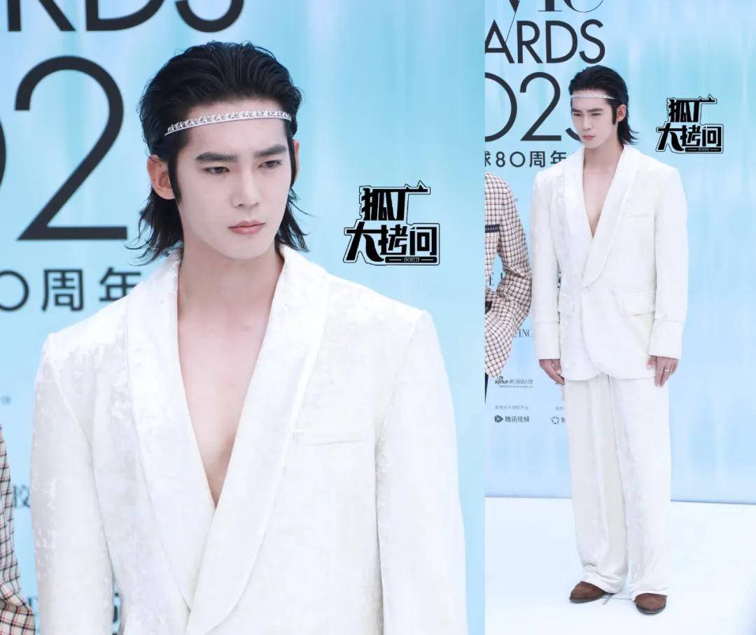 于适也穿了白色V领西装,不过V的程度比高伟光更甚。要是他跟高伟光同框,大概会像永远站在王身旁的得力助手。