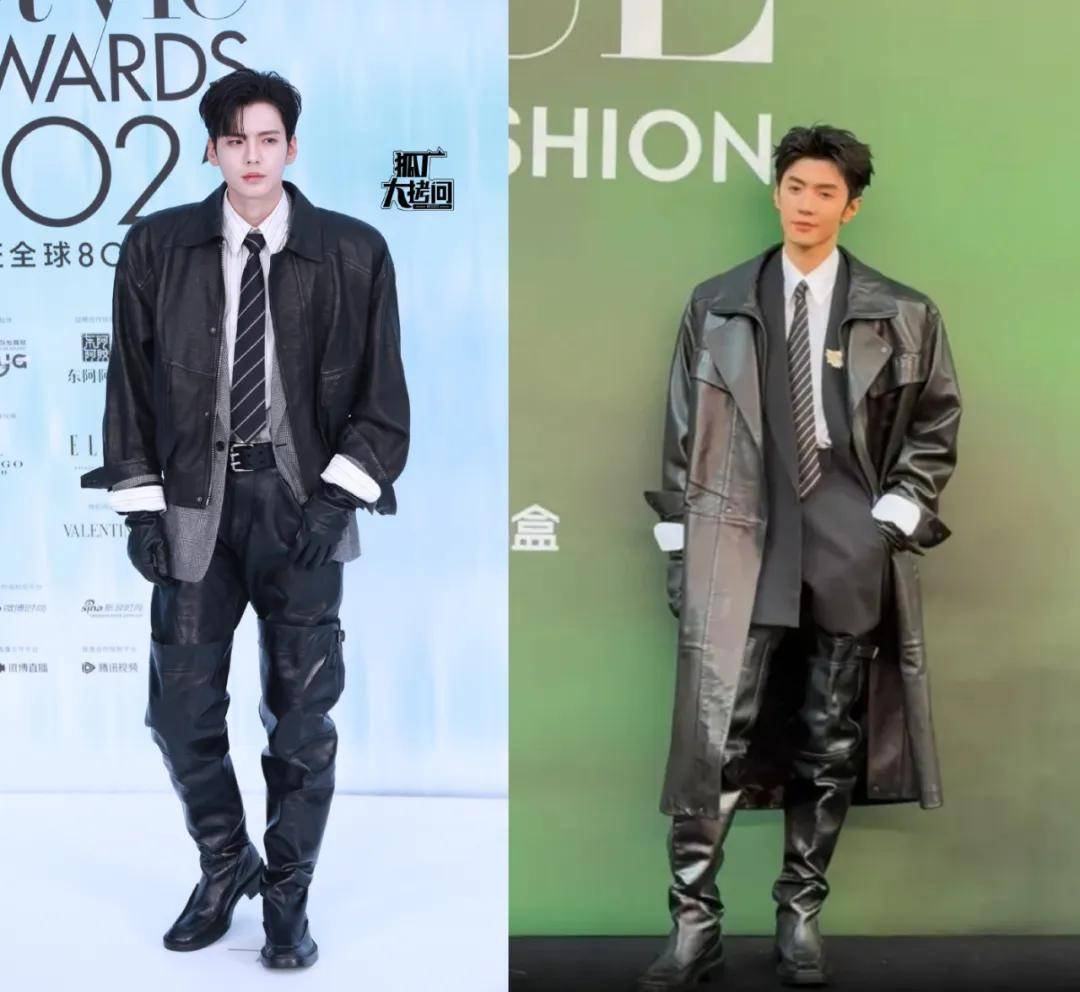 前几天陈哲远出席活动穿过一套类似的,虽然两人身上的元素都大差不差,但整体还是陈哲远更自然,不会有强拗宽肩膀的感觉。