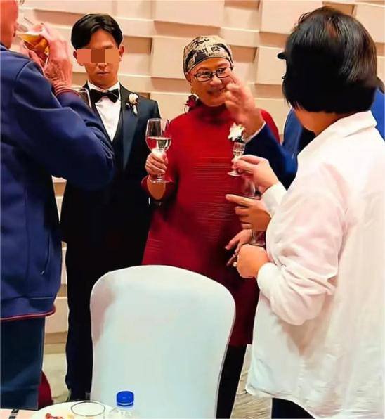 婚礼仪式结束之后,可以看到,卢璐拿着酒杯和大家有说有笑。