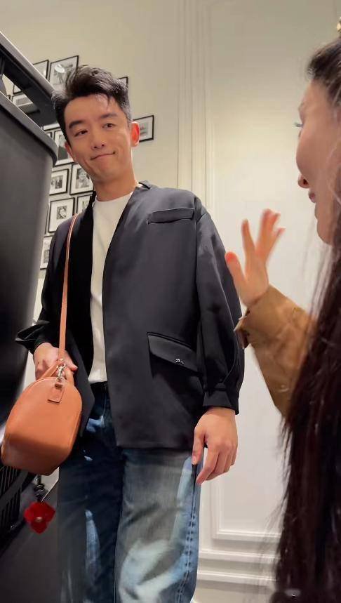 郑恺穿黑色衬衫搭配浅色裤子,苗苗则是咖色的吊带连衣裙,夫妻二人看起来都瘦了不少,估计是带娃累的。