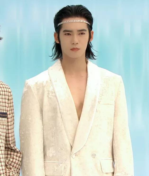 整张脸妆容假面感严重,脸肿加上眯眯眼,看起来更是不怎么帅气。