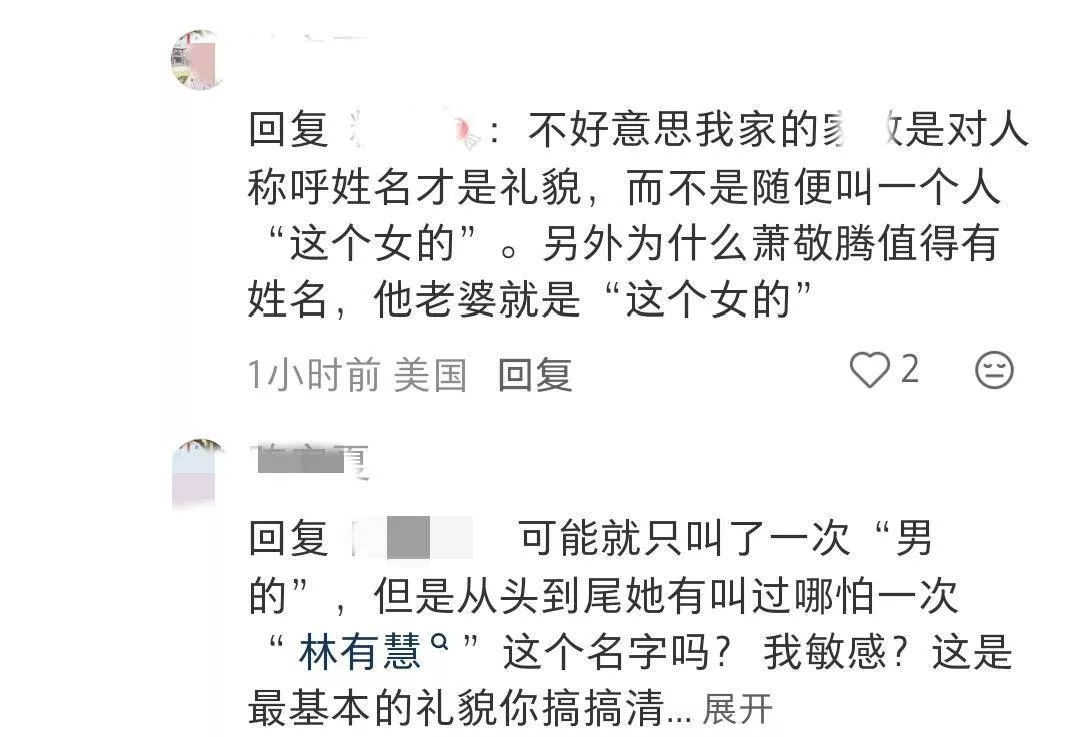 网友敏锐察觉到:“若真把林有慧当自己人,绝不会用‘这个女的’来指代。 ”