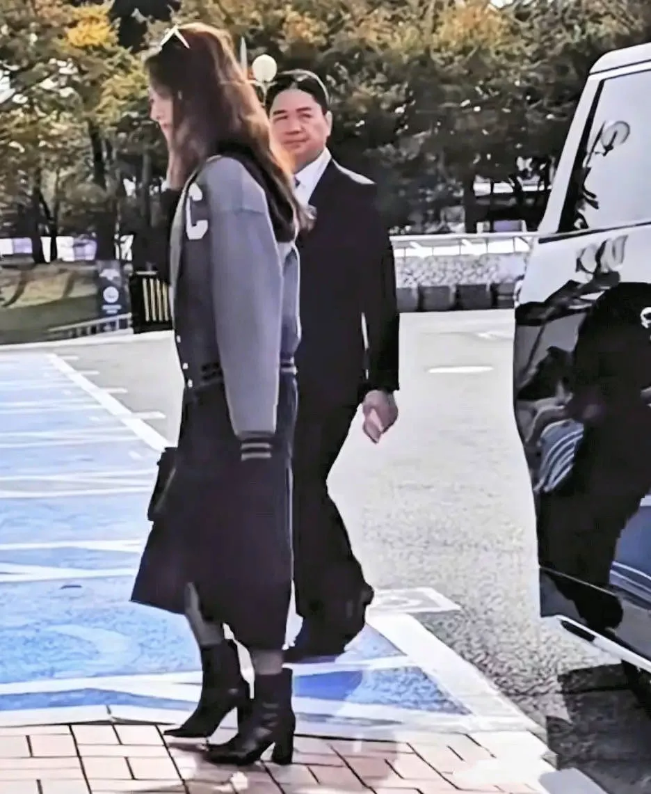 ?章泽天先从车上下来,刘强东在后面走下来。章泽天并没有回头看看老公的意思,她拎着包就向前走。