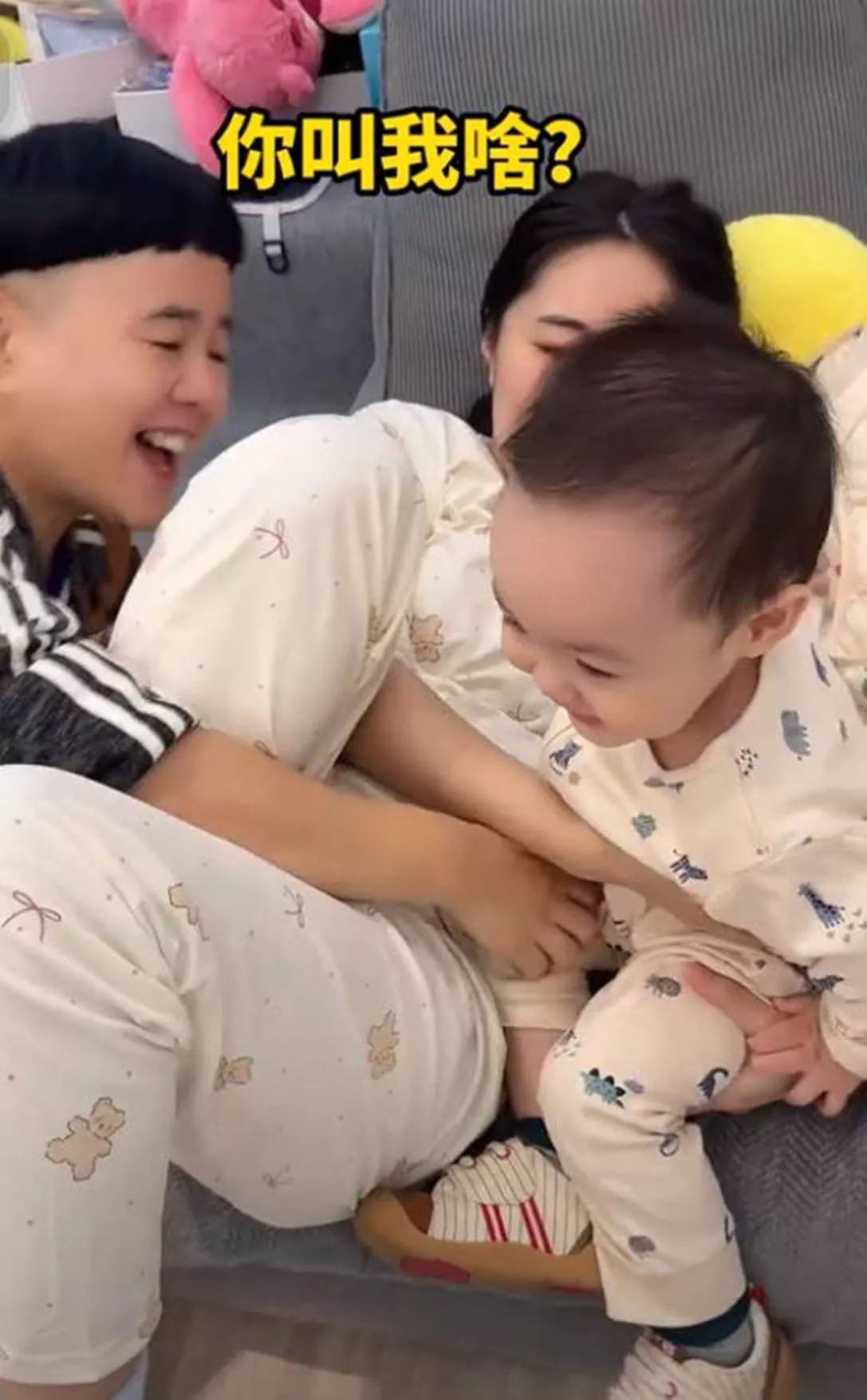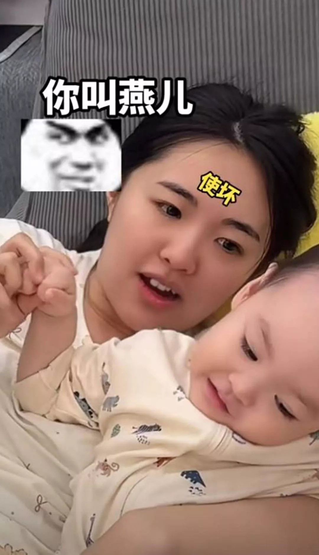 视频中,金龟子、娃娃和金宝坐在沙发上玩耍。为了逗儿子开心,娃娃教金宝喊姥姥的名字“燕儿”,金宝学得很快,甜甜地喊着,一口流利,估计平日里听姥爷王宁这样喊姥姥已耳熟能详。