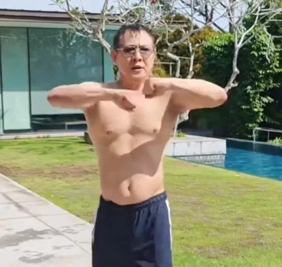 62岁李连杰豪宅游泳,脱光上衣自证清白,大腹便便并无刀疤