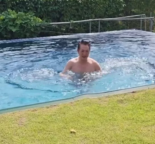 为了“自证清白”,杰哥直接光起了膀子,在自家豪宅里面游泳。