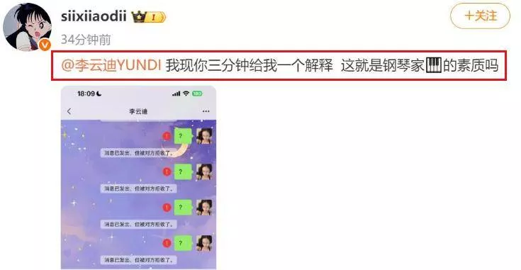 删除了“讨伐”微博后,司晓迪又在随后的动态中表示:“我真的很讨厌李云迪了!”这番言辞让许多网友感到迷惑,他们不明白李云迪与司晓迪之间究竟发生了什么。两小时后,司晓迪再次在社交平台上发文,表示给李云迪三分钟的时间,要求他给出一个合理的解释。然而,李云迪方面始终没有作出任何回应,保持了沉默。