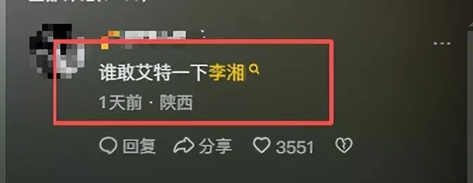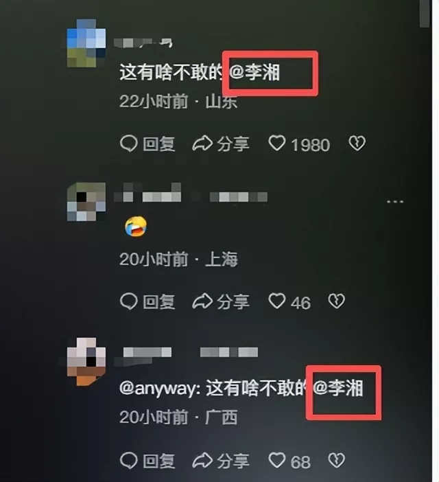 于是乎,评论区中有网友留言:“谁敢艾特一下李湘”。