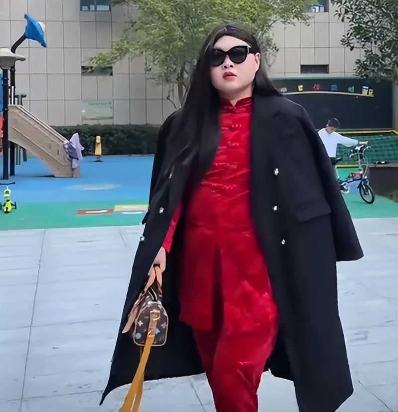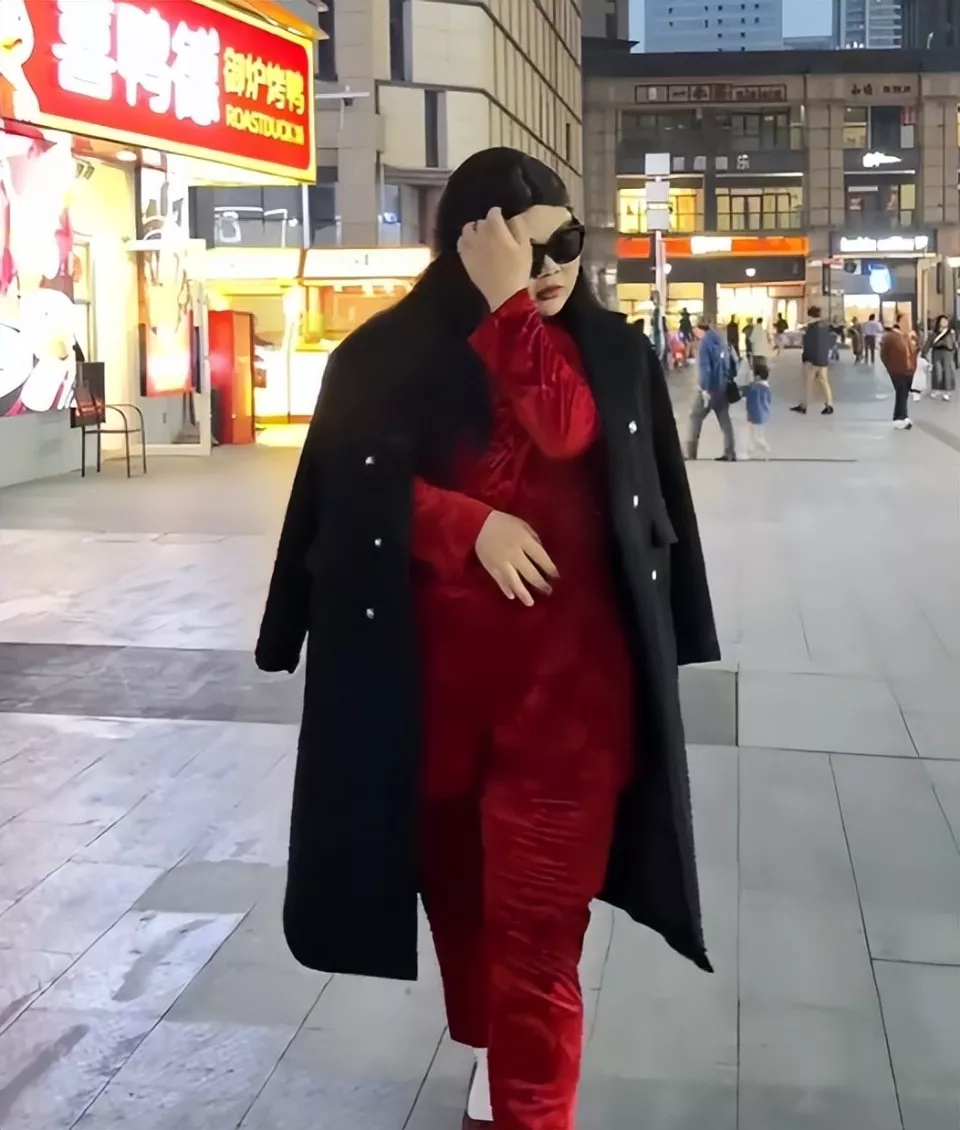 从画面中我们可以看到,这位女网红和当初李湘在机场时穿的一模一样,都是红色衣服配黑色风衣。