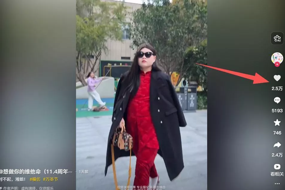 由于第一条视频流量非常好,所以今天维他命又开始模仿起了李湘。