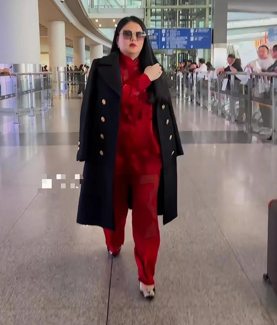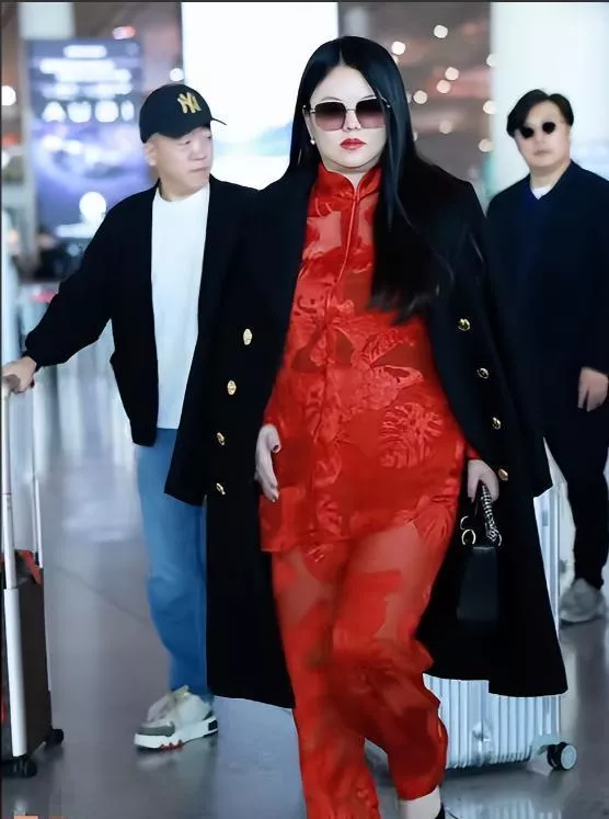 说起全网模仿这事儿,还得提10月14号他俩在机场的现身。那组照片当时直接冲上热搜,李湘穿了件红色套装,外面套的大衣都被撑得鼓鼓囊囊,腰部线条完全看不出来,双下巴也挺明显,网友说
