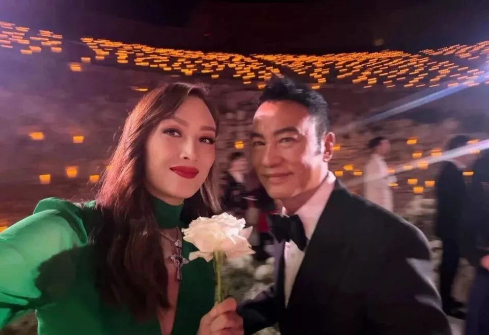 任达华和妻子琦琦也来参加了这场婚礼,琦琦身穿绿色长裙,很有意大利的浪漫气息。任达华把女儿任晴佳也带来参加婚宴了