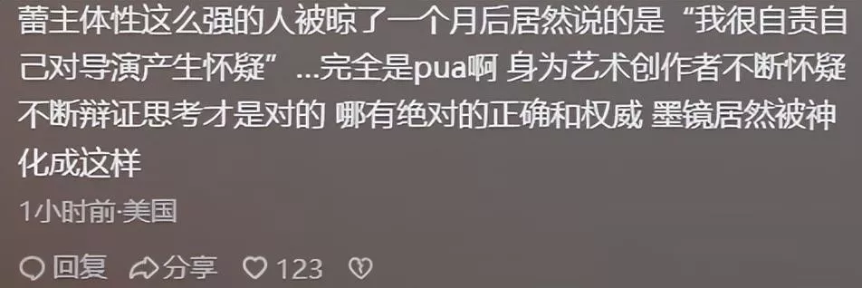 但今天,当《人世间》《觉醒年代》等剧证明了好作品无需以践踏尊严为代价时,公众不再买账。有人一针见血:“如果艺术追求意味着让演员吃20根冰棍拍生理期戏份、删光戏份还要被开黄腔,那这艺术究竟是殿堂还是刑场?”