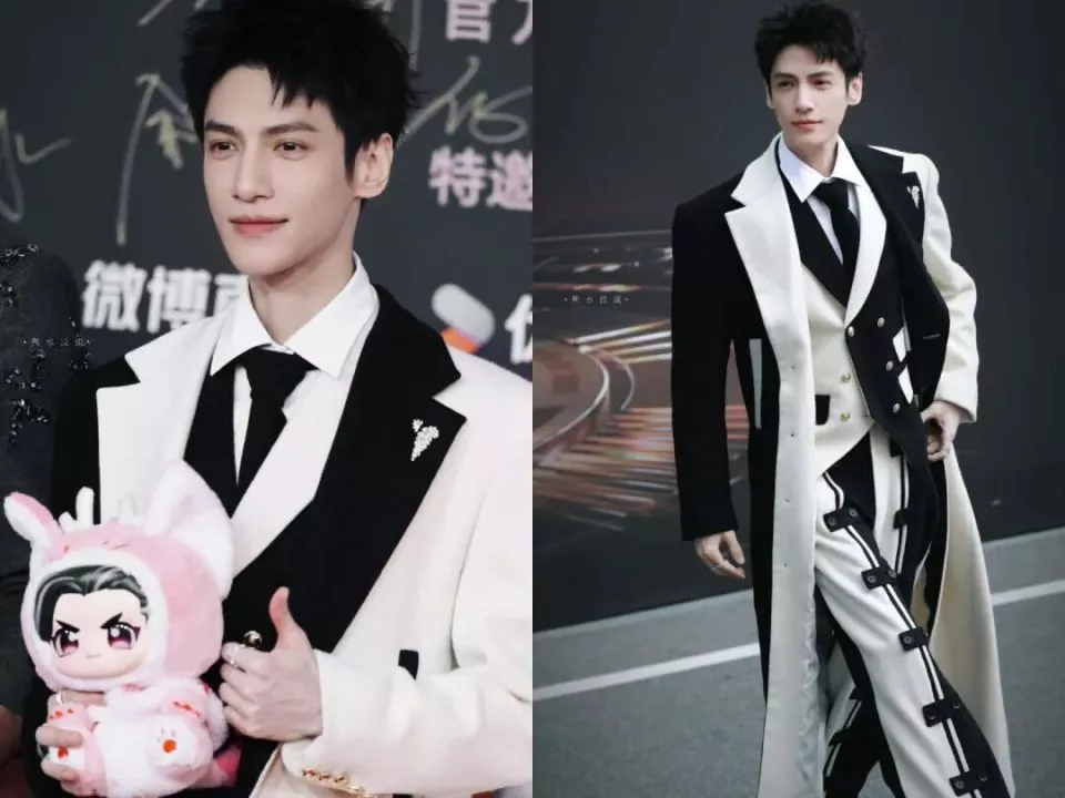 罗云熙一身黑白撞色西装,仿佛把钢琴穿在身上了。