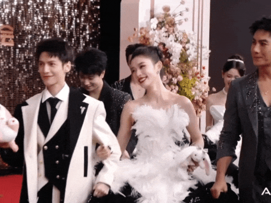 当其他人都走在前面给林允提裙摆时,杨仕泽一直走在陈瑶旁边,我的桃普CP圆满了。