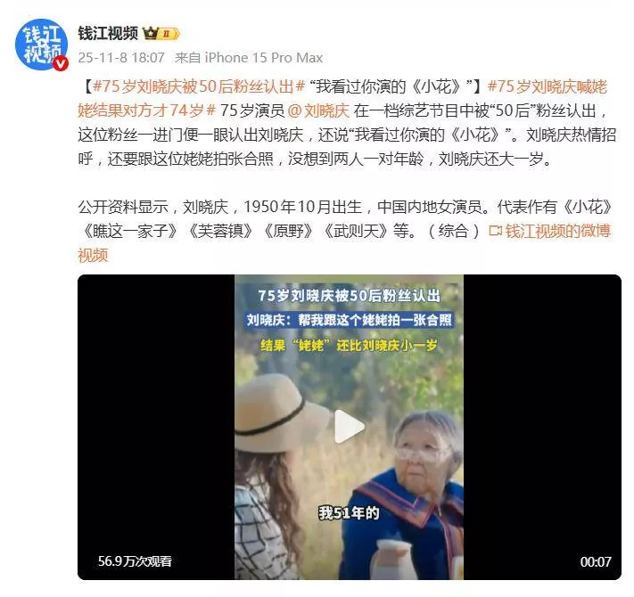 面对这位热情的铁杆粉丝,刘晓庆也表现得十分亲切,热情地招呼对方为“姥姥”,还主动提出要合影留念。这原本是一派其乐融融的画面,没想到紧接着就迎来了戏剧性反转——两人一核对年龄,这位被称作“姥姥”的玛妮粉丝,实际出生于1951年,今年74岁,反而比1950年10月出生的刘晓庆,还要小上一岁!