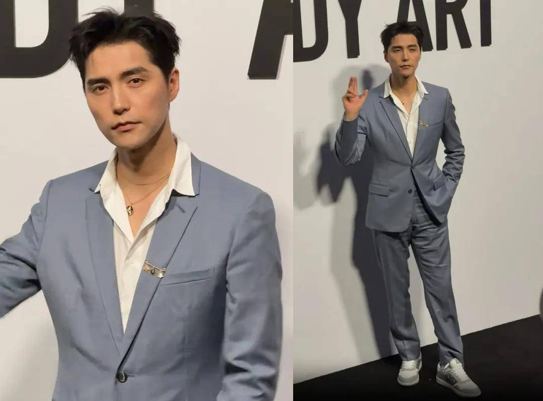 同场的于适是经典的西装配皮鞋,阿云嘎则是比较休闲的搭配——西装配运动鞋。但这双鞋似乎过于有运动感了,所以跟西装的契合度并非百分百。当然,如果只看上半身的话,阿云嘎的造型还是成功的,展现了他成熟儒雅的一面。