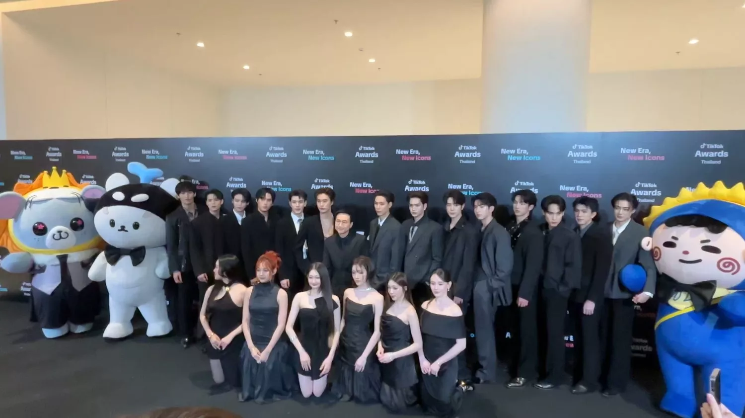 泰国影视公司GMM TV举办宣传活动合照时男演员们在后方站立,6名女演员却是穿著礼服跪在前排,引起热议。(feed_4_future@X)
